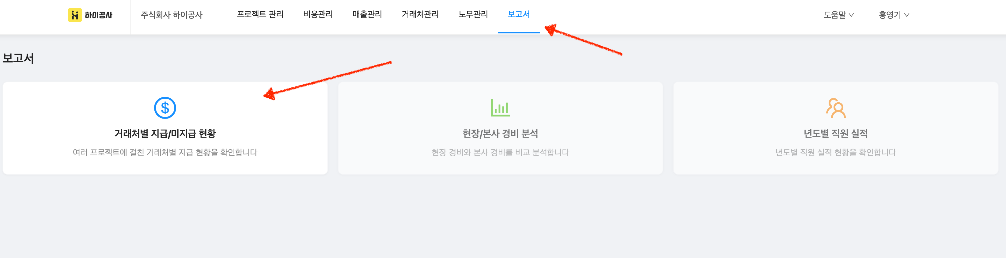 '보고서' 메뉴의 사업자/작업자별 지급 현황 삭제
