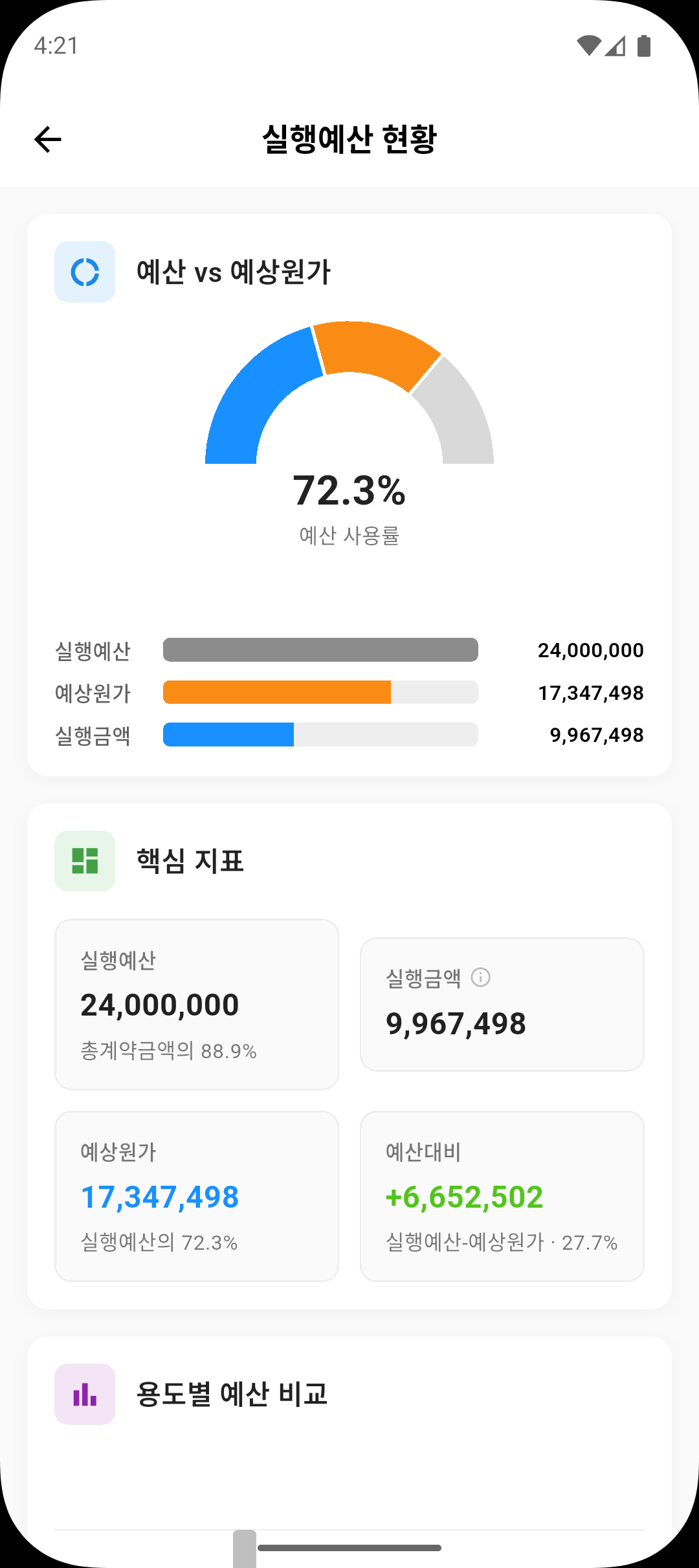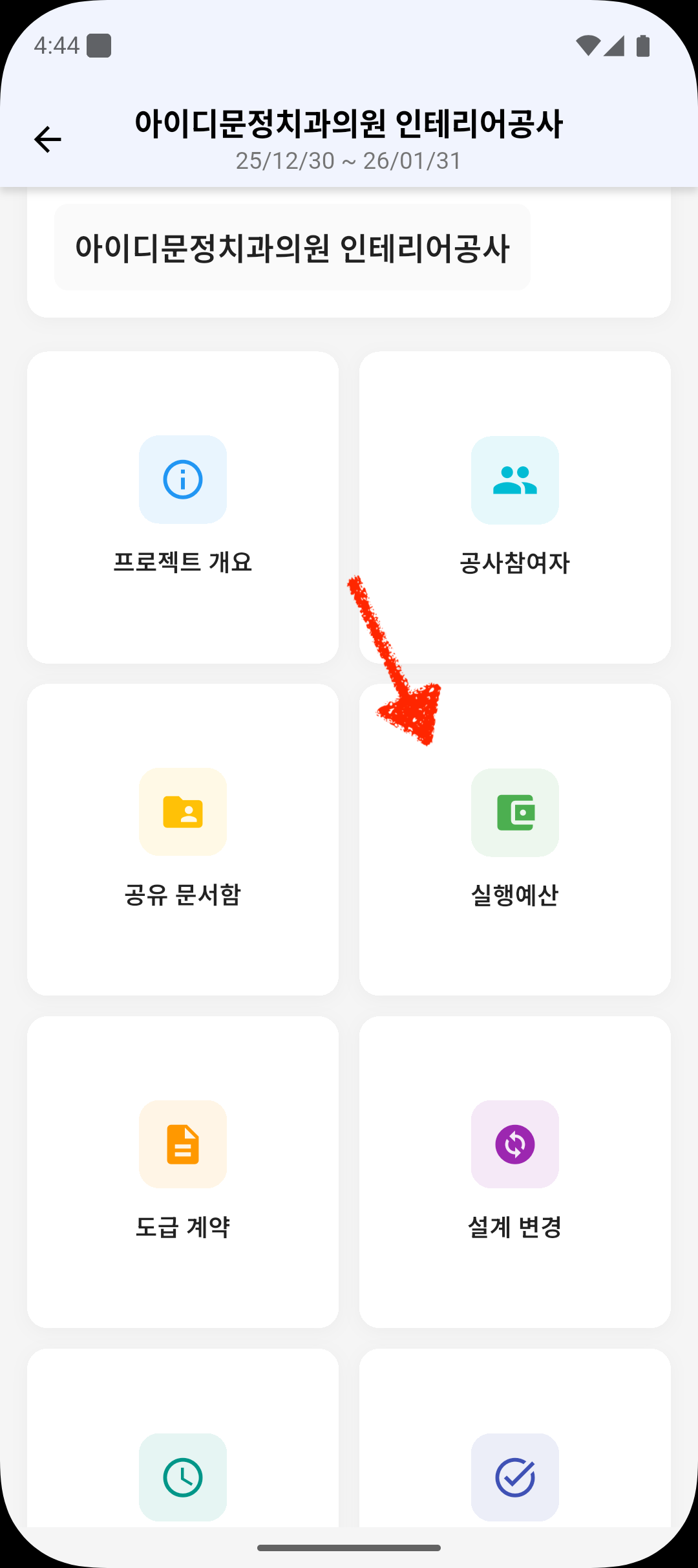 실행예산 비활성화 프로젝트에 실행정산 메뉴 추가